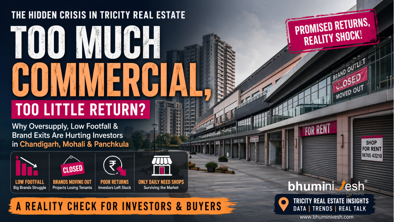 Introduction: The Illusion of “Guaranteed Returns” Over the last decade, the Tricity region—Chandigarh, Mohali, and Panchkula—has witnessed an explosion of commercial real estate projects. From high-street retail to mixed-use developments, every new
